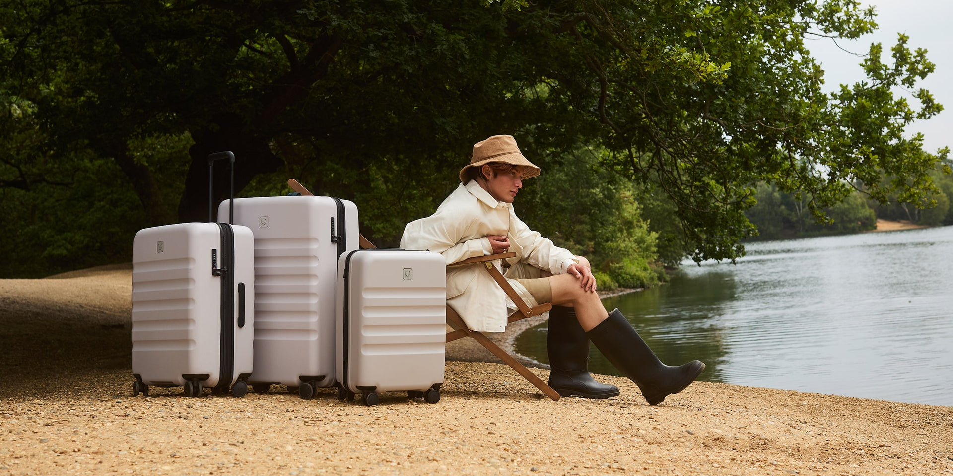Translation missing: en-GB.sections.wishlist.add Carry-on with Pocket Luggage Set in Taupe - Icon Stripe
