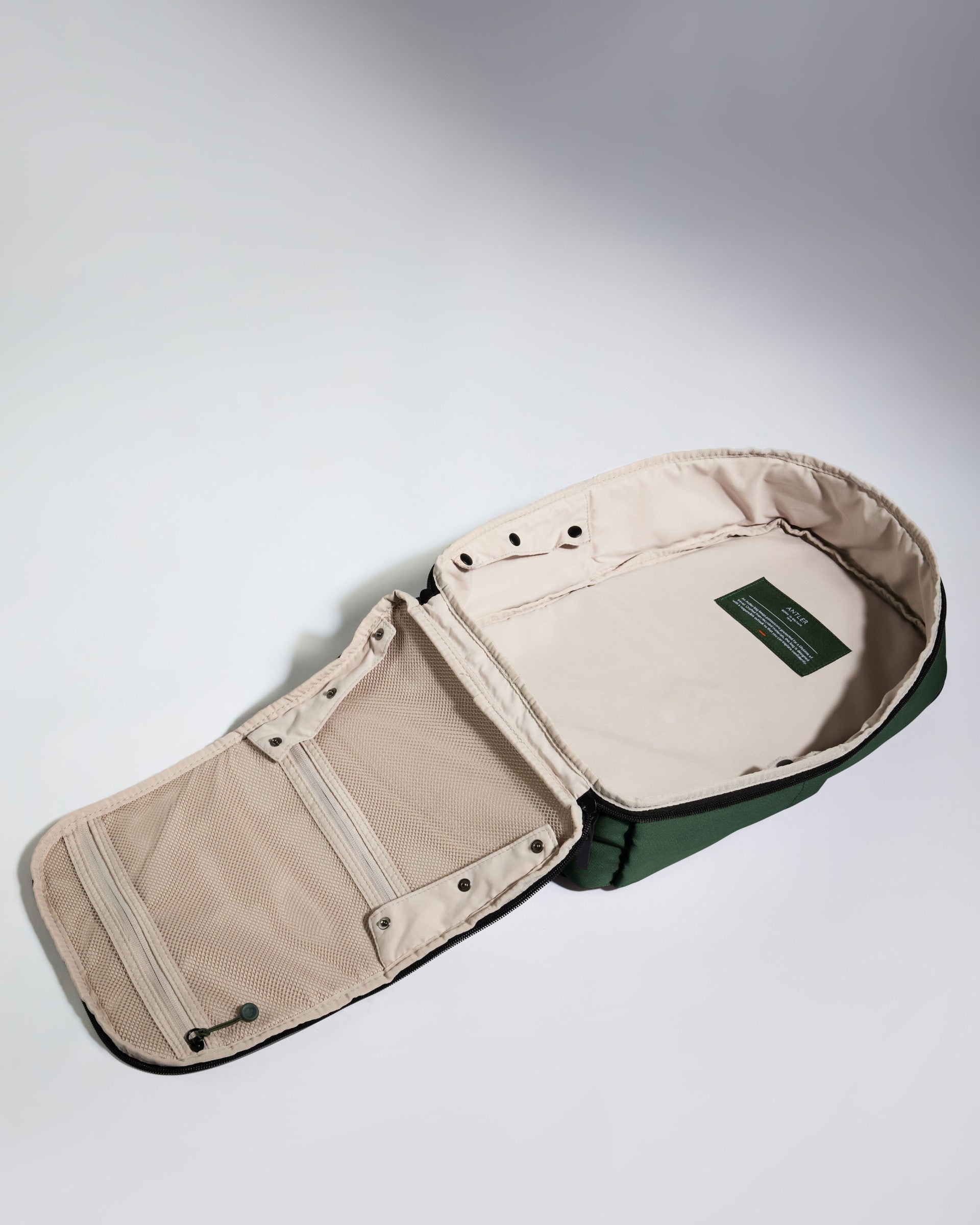 The Essential Backpack is the ultimate companion for modern travellers seeking space and sustainability. Made from 100% recycled polyester, this lightweight backpack offers a streamlined packing solution for short stays and everyday use.