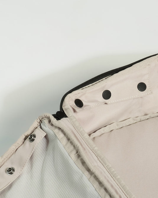 Designed to fit underseat on airlines, the practical design opens like a suitcase, with a detachable gusset for convenient packing without rummaging. Externally, a sleek magnetic flap conceals a hidden essentials pocket, ensuring your valuables stay secure yet easily accessible. Inside, dedicated compartments for a laptop and water bottle offer effortless organisation, providing space for everything you need on days out and nights away.