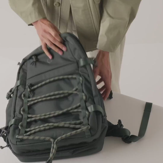 Designed for versatility, the spacious front pocket allows ample space for organised packing, while the dedicated rear compartment offers a protective pocket for laptops up to 16.5 inches. Elevate your organisation even further with internal dividers, a water bottle holder, and a chunky external cord for strapping on extra belongings with a flair of individuality.