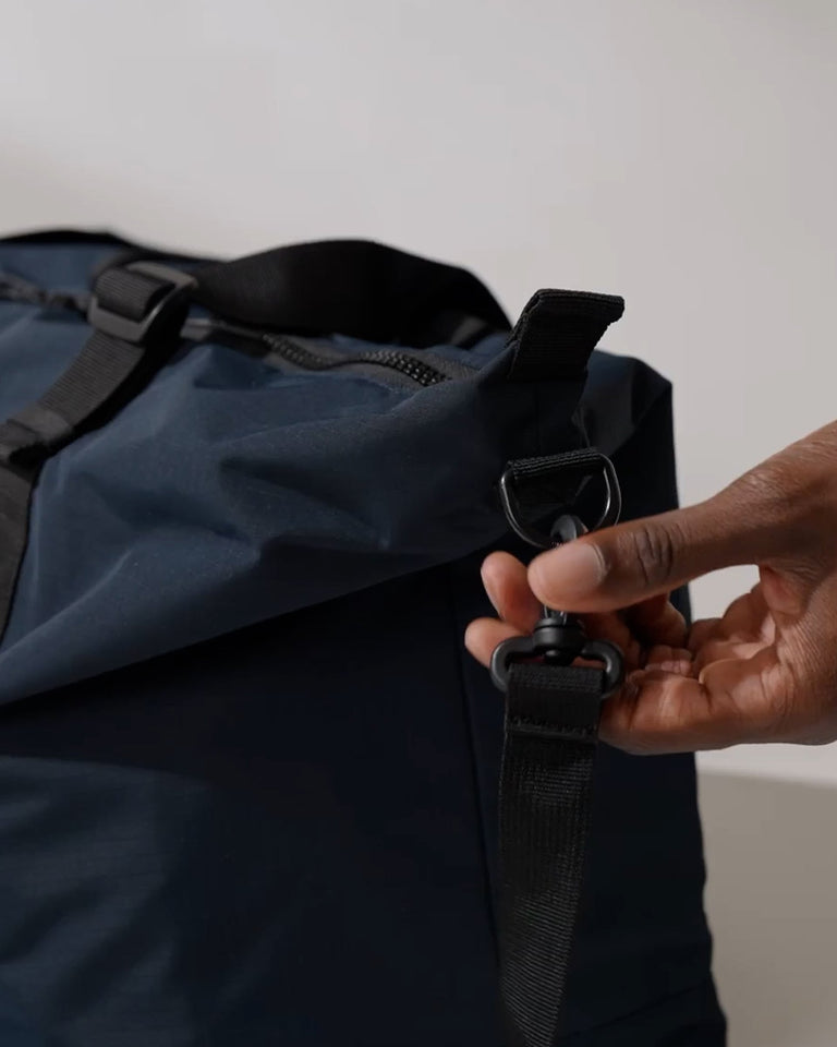 Inside, a padded laptop sleeve protects your tech. The durable webbing strap reinforces structure, while the adjustable top handles adapt to however you’re travelling.