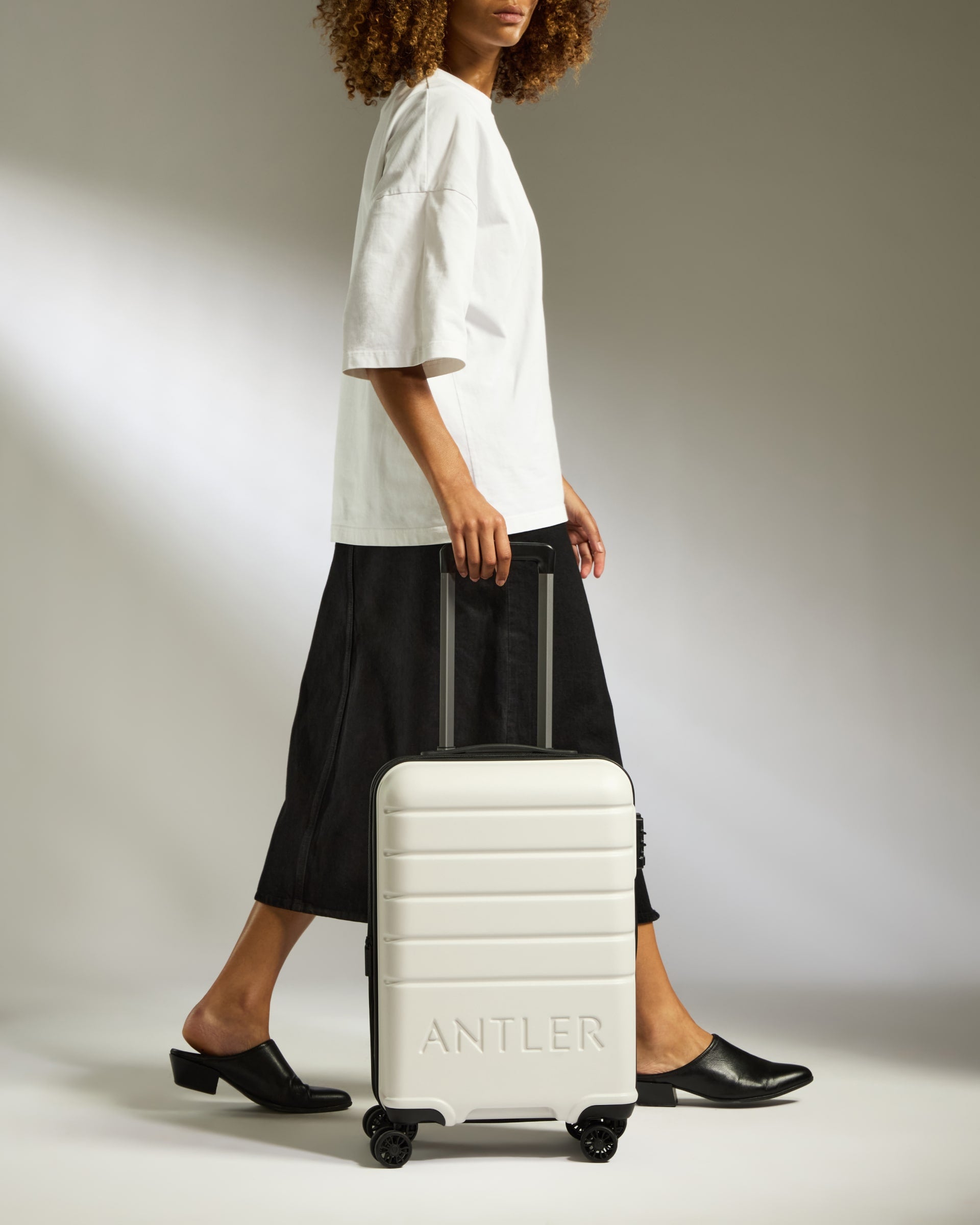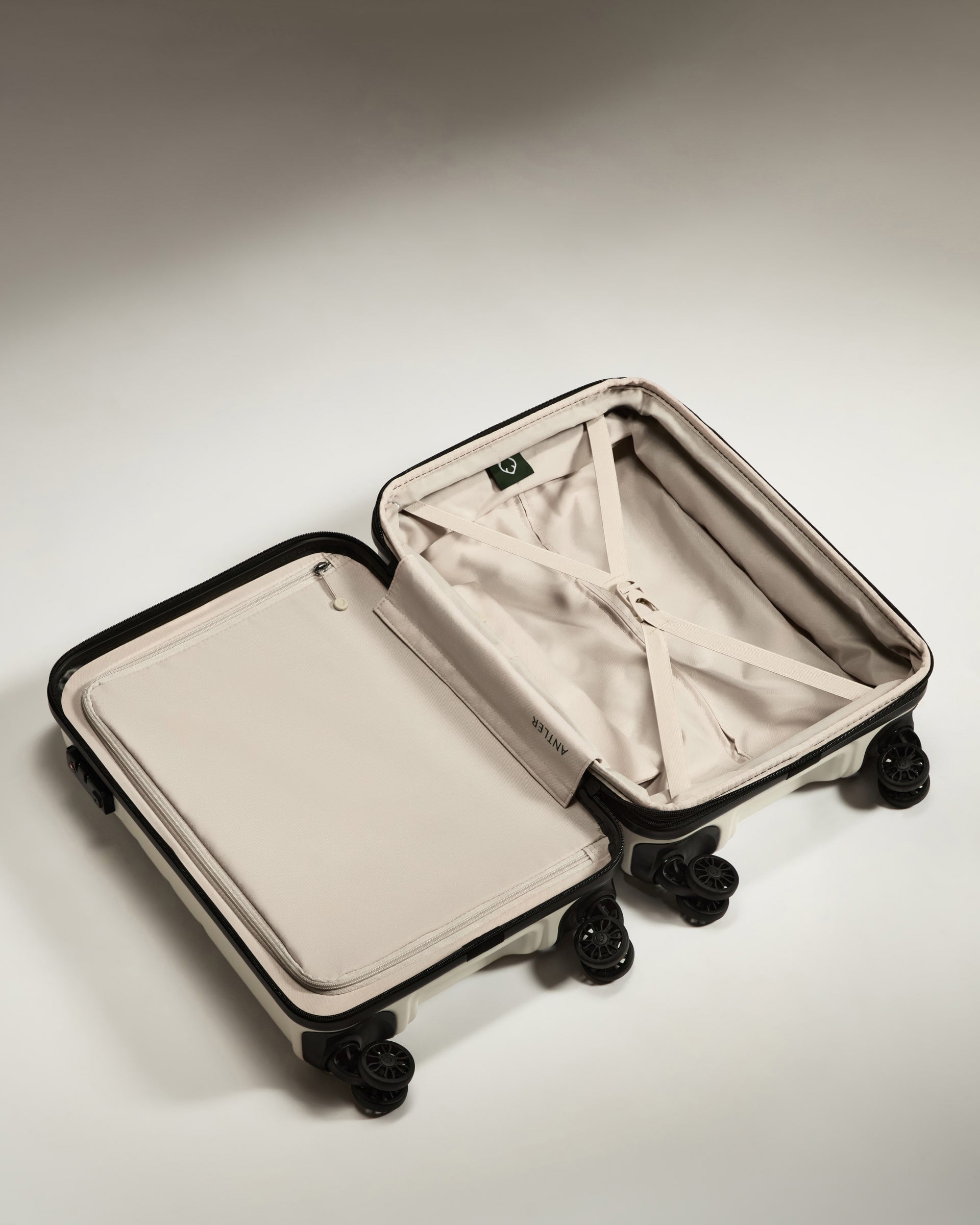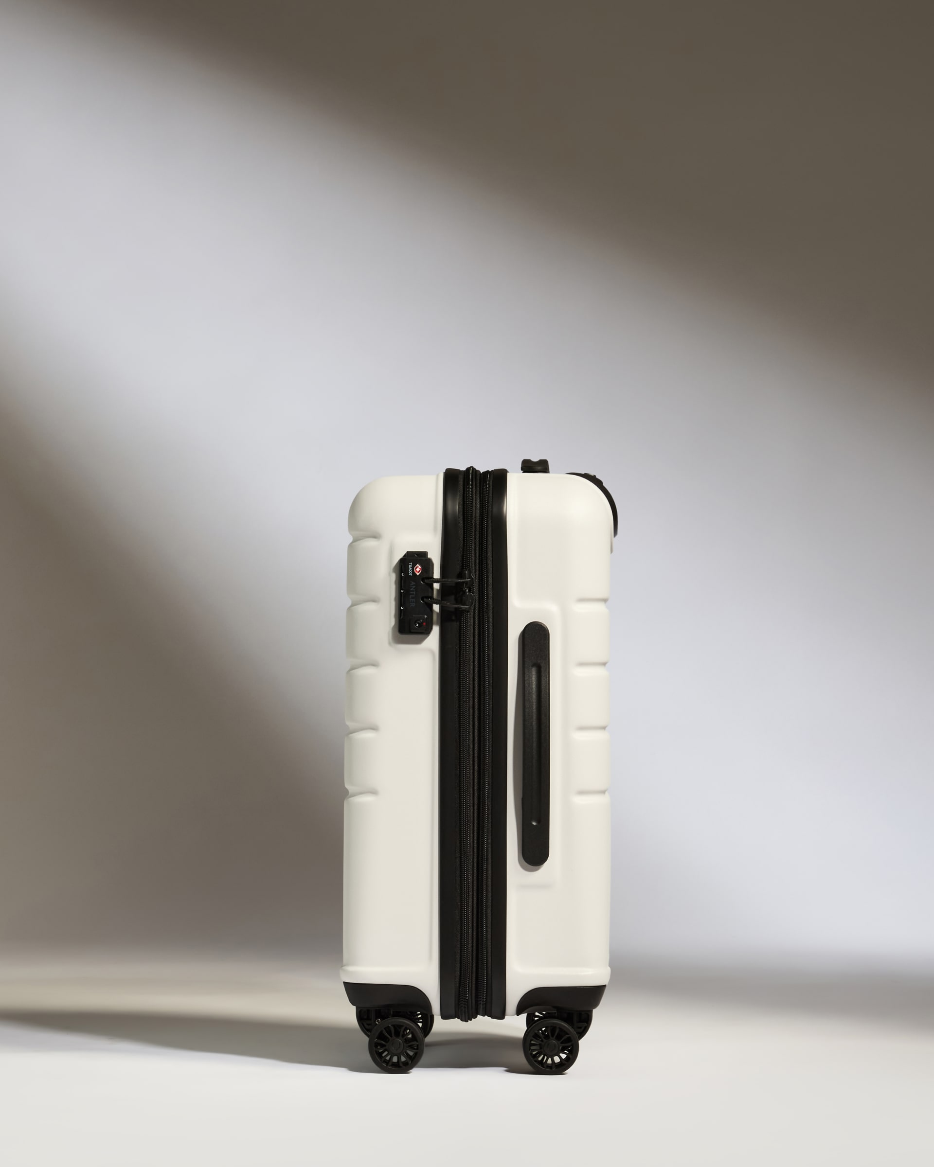 The all-new Logo case from Antler, designed to offer you a streamlined and lightweight travel companion. Purposefully designed, the hardshell suitcase boasts a minimalist design and features the iconic Antler logo on the exterior and interior. Crafted from durable polycarbonate, it prioritises functionality with an ergonomic grip handle and double spinner wheels for seamless navigation.