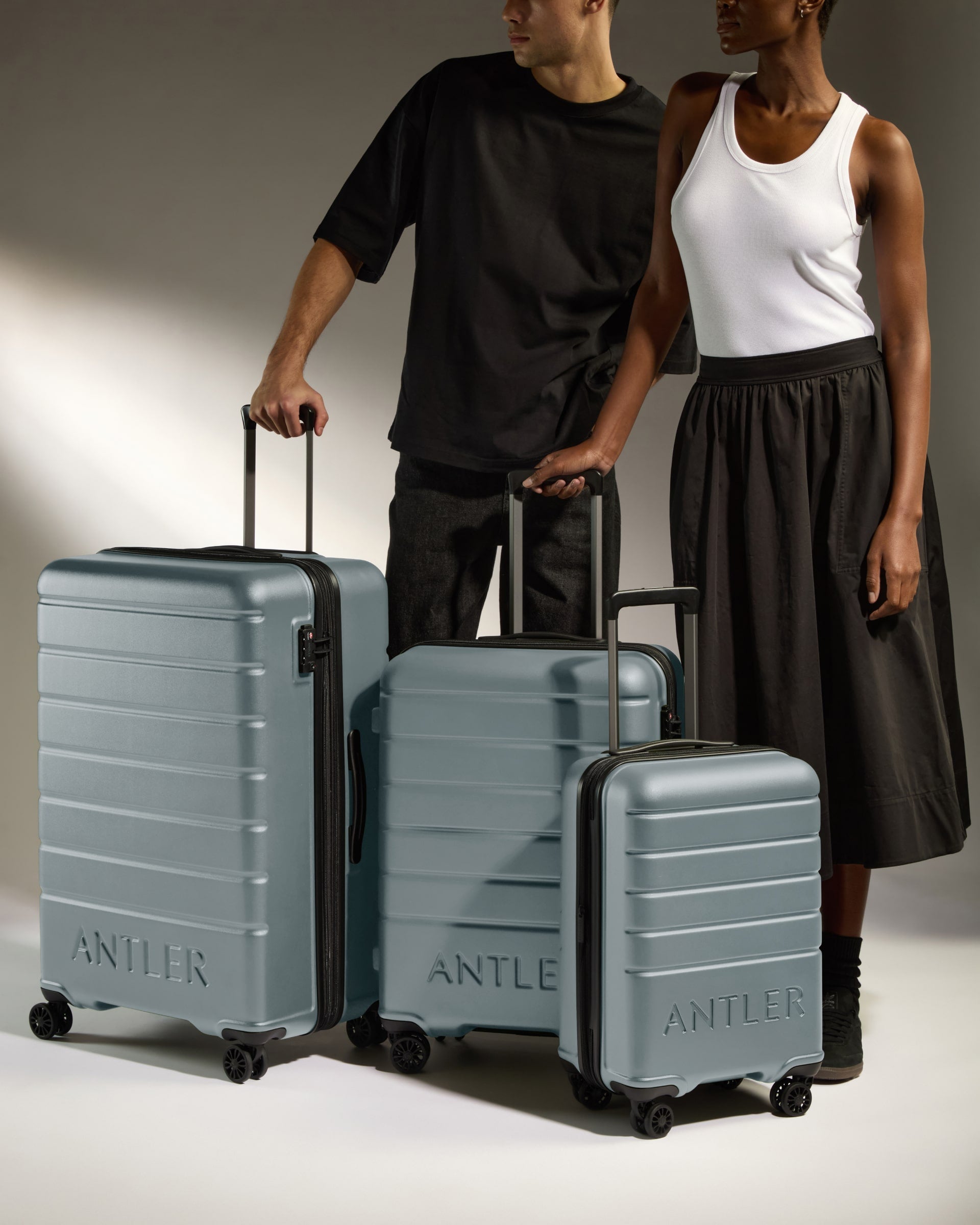 - Expandable Carry-on Luggage Set in Blue Grey - Logo (Blue-grey)
