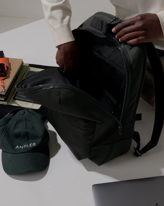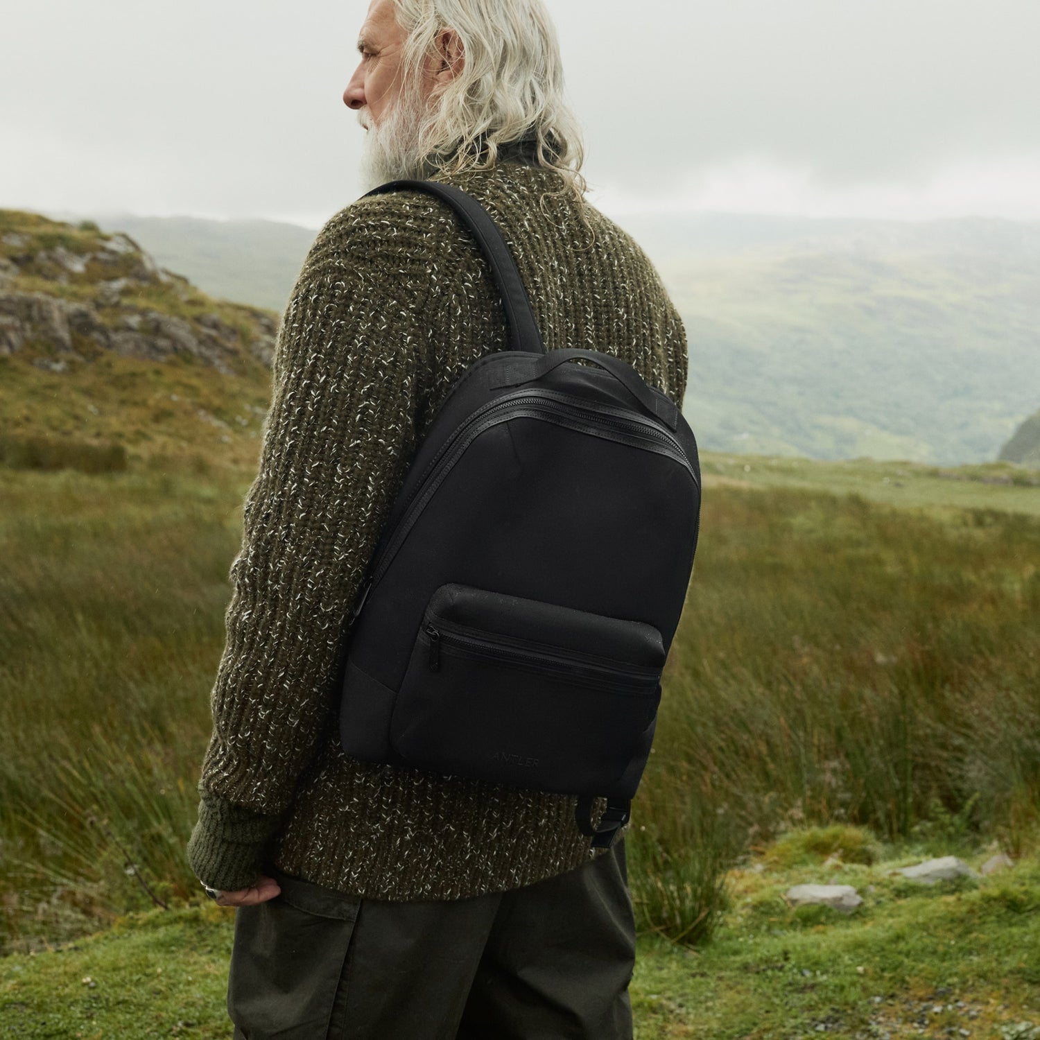 Made from 100% recycled, water-resistant materials and finished with premium leather trims, the Icon Backpack is designed with structure and substance. Inside, a padded laptop compartment protects your tech, while seven internal pockets keep everything in place. Designed to fit 14” and 16” devices, it also features a breathable mesh on the back panel and underside of straps – ideal for daily commuting and energetic travel.