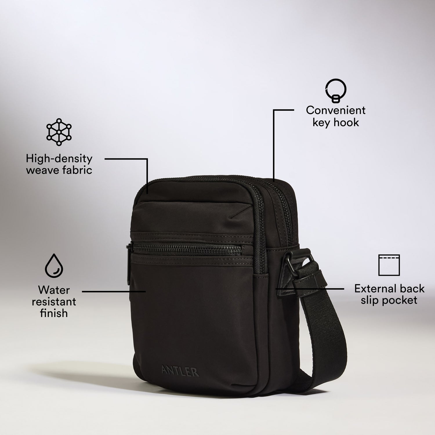 The Icon Crossbody provides the space you need for moving about your day with ease – it fits your phone, keys, wallet and more, with two internal compartments and a back slip pocket for easy access. A clip lets you attach charms, a carabiner, or an AirTag for peace of mind, while the internal key hook means you never have to go rummaging at the front door.