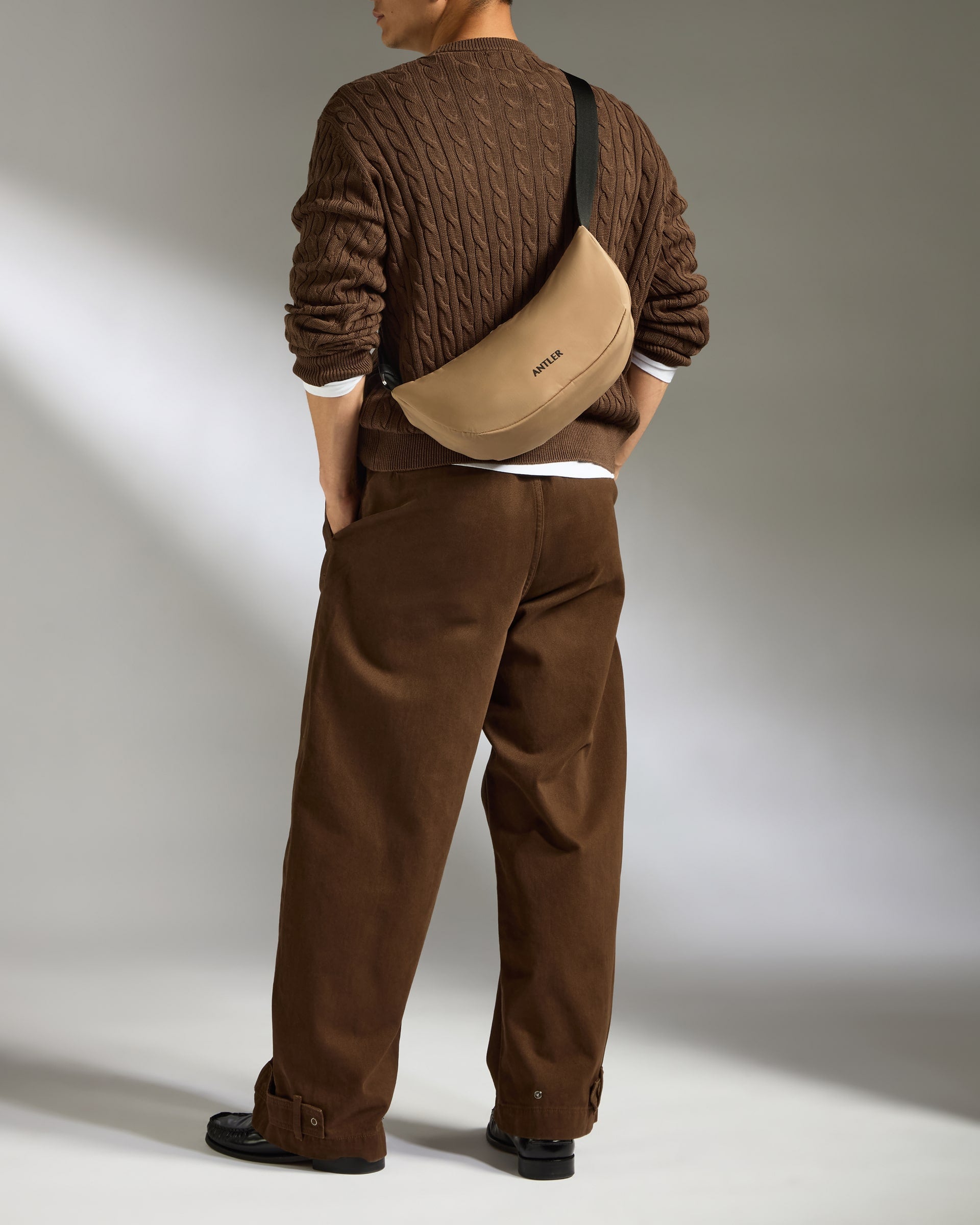 Made from 100% recycled, water-resistant fabric, the compact design fits more than you’d think and provides light protection from the elements. Internal pockets keep everything in its place, while the adjustable strap lets you wear it how you like – slung across the body for active days, or on your shoulder for something more refined.