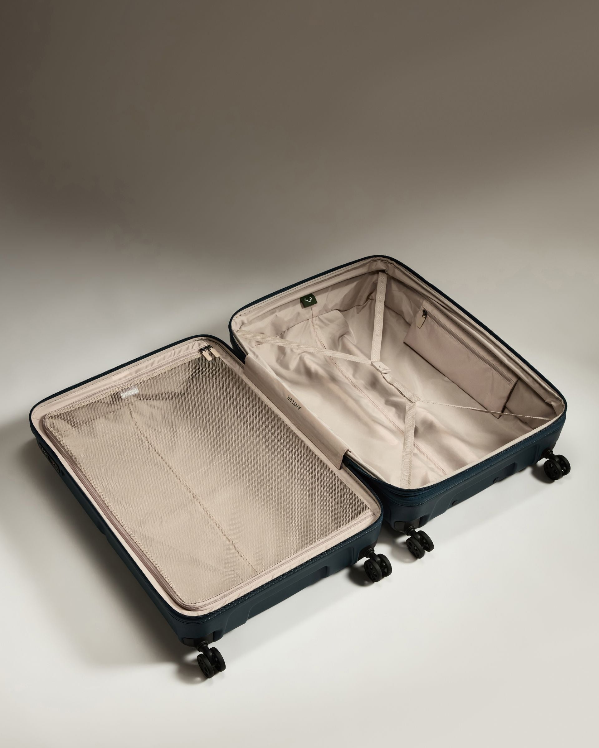 Inside, the case is complete with fully recycled lining, packing straps, and a mesh divider, giving you maximum packing capacity and organisation for extended journeys or family trips. The central stripe is a canvas for personalisation with an Antler luggage strap, and can be playfully mixed and matched with other pieces in the Antler collection for a cohesive, colourful travel set.