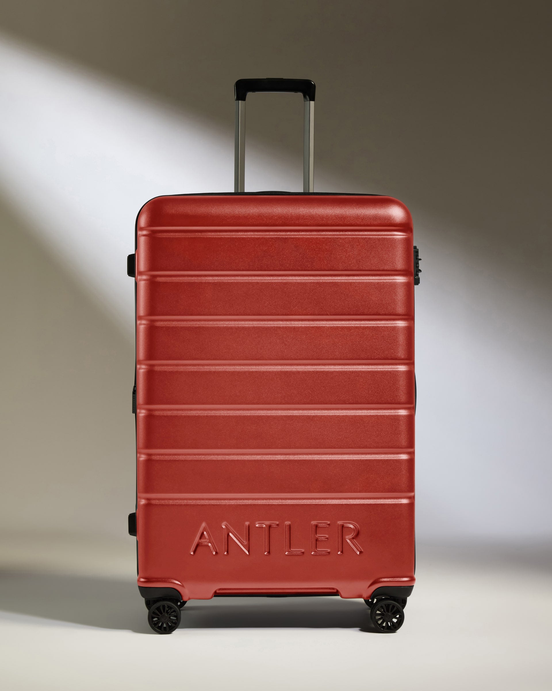 The all-new Logo case from Antler, designed to offer you a streamlined and lightweight travel companion. Purposefully designed, the hardshell suitcase boasts a minimalist design and features the iconic Antler logo on the exterior and interior. Crafted from durable polycarbonate, it prioritises functionality with an ergonomic grip handle and double spinner wheels for seamless navigation.
