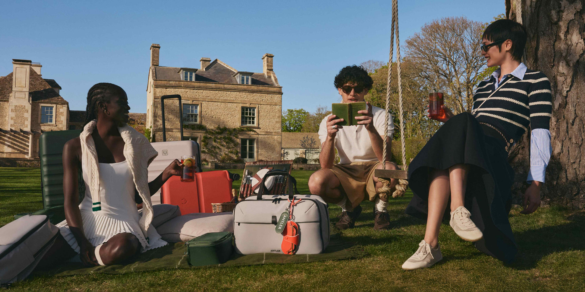 Inspired by garden games, lawn sports that always become a touch too competitive, and the golden glow of outdoor play, this is travel styling made for movement – complete with contrast stitching, colour-pop leather, and effortless packability.