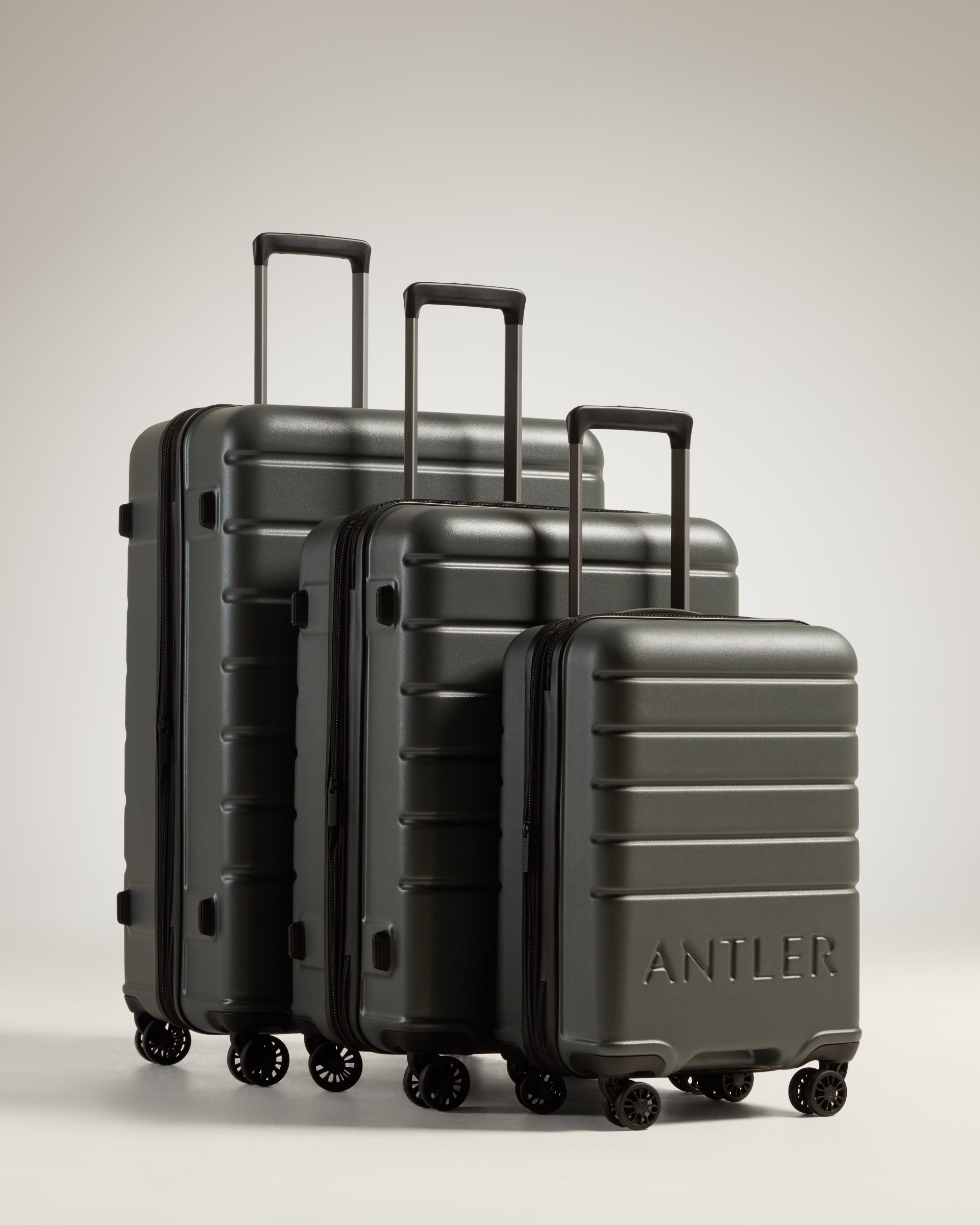 - Dimensions Carry-on 54.4 x 36 x 24.5cm, Medium 67.5 x 47.6 x 30cm and Large 81 x 53.7 x 35.5cm (includes wheels)